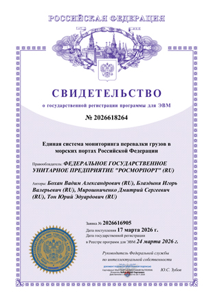 • Certificate of the Trademark FSUE “Rosmorport” № 690257