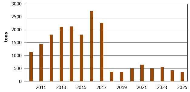 At the end of 2025, the total volume of excavated bottom soil amounted to 5 million cubic meters. The excavated soil was stored in shallow and deep-water dumps in accordance with the permit No. 319M of 06.06.2023 issued by Rosprirodnadzor for burial of the bottom soil, dredged during dredging operations, in inland sea waters. The permit is valid until December 31, 2032.