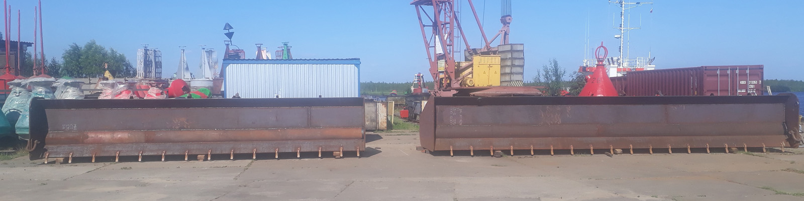 b) leveling device (plow) installed on the Kapitan Evdokimov icebreaker, designed to level and remove bottom irregularities in the form of individual banks, dunes and ridges, which remain after dredging work with self- transporting bilge dredgers. For automation and monitoring the execution of work on leveling the bottom, the Kapitan Evdokimov icebreaker is equipped with a monitoring system for the work being carried out, which allows to control the position of the vessel and displays the spatial position of the leveling device (mechanical plow) based on the Nonius software and hardware complex.