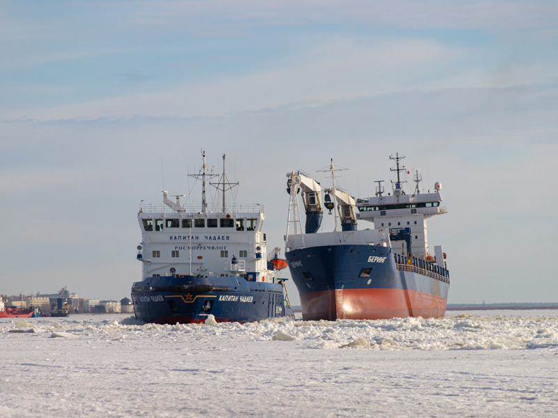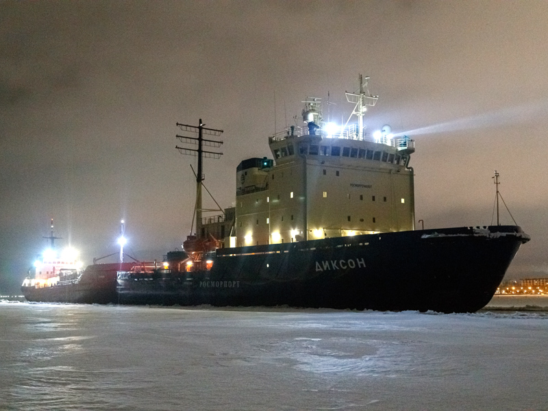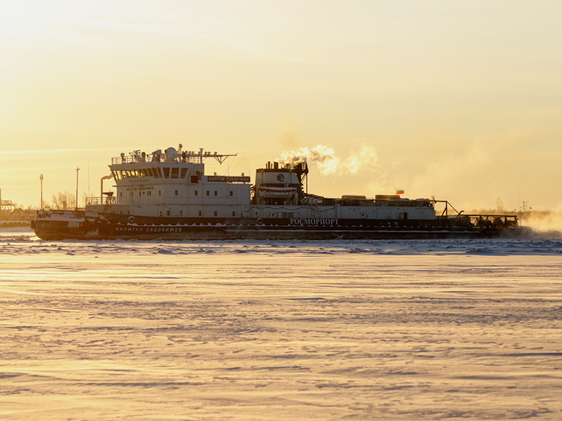 During winter navigation in the seaport of Arkhangelsk towing support is provided by the Arkhangelsk Department of the Arctic Basin Branch icebreakers.