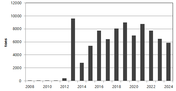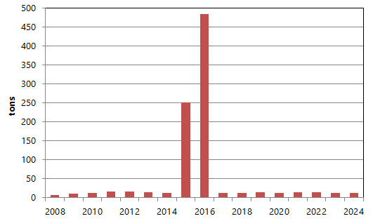 The significant reduction in emissions of pollutants into the atmosphere caused by the branch’s activity in 2017-2024 is due to the fact that in accordance with the environmental legislation emissions from mobile sources of pollution (cars, vessels and open car parks) are no longer standardized and are not taken into account in the draft standards for maximum permitted emissions.