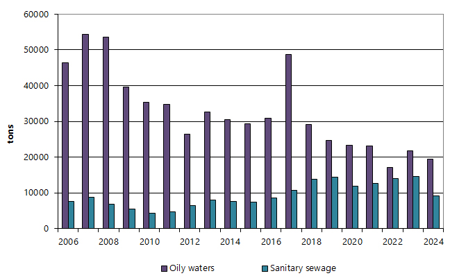 During summer navigation the North-Western Basin Branch together with the specialized organizations provides for daily works on cleaning of surface of certain parts of the water area of Big Port of Saint-Petersburg used by the branch from pollutions carried by the river, tide, rainfall, ice, storm, and also dumped form vessels and enterprises located near the seaport water area. Waste in the water area of ​​the seaport of Big Port of Saint Petersburg is forming primarily due to the specifics of the seaport geographical location, where the main part of waste is brought to the seaport water area from the city through the rivers of Bolshaya and Malaya Neva, Ekateringofka and Obvodny Canal.