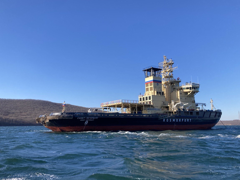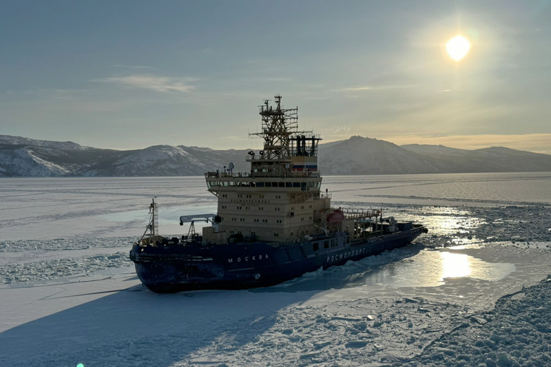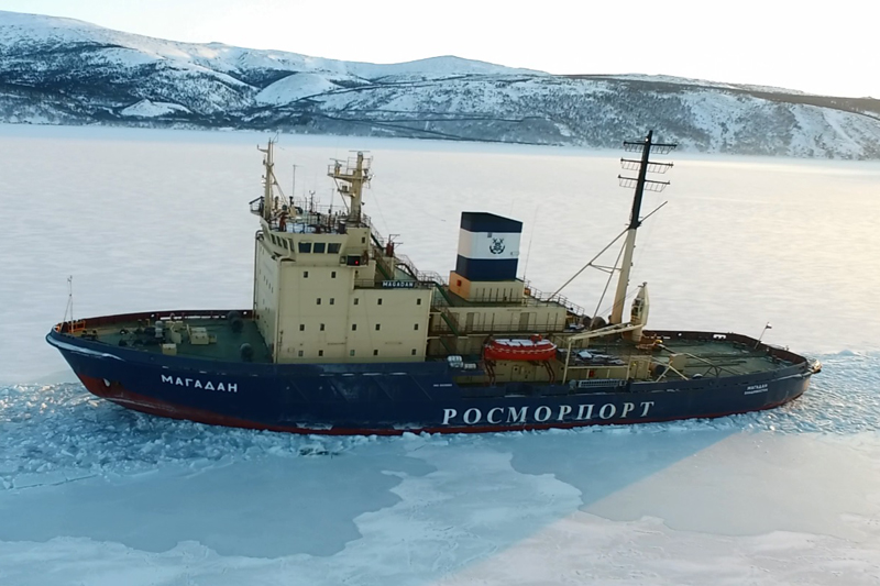 The icebreaker assistance is carried out using the Moskva icebreaker, the Sankt-Peterburg icebreaker and the Magadan icebreaker of the Far Eastern Basin Branch.