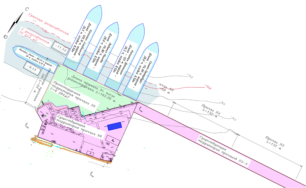 - project for the reconstruction of berth No. 25Layout plan of berth No. 25 of the seaport of Nakhodka. The project envisages replacing the 19.5 m long pile berth with a bulwark berth of at least 120 m long. With this, it will be possible to use the berth for placing dredging vessels of the FSUE “Rosmorport” Far Eastern Basin Branch up to 70 m long, up to 14.5 m wide and with a loaded draft of 4.3 m.