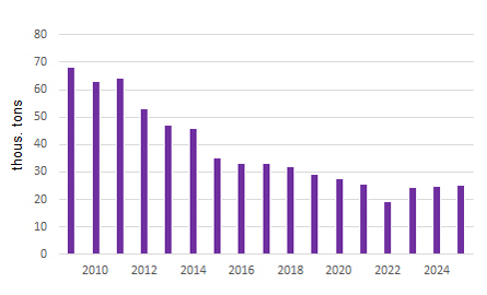 The enterprise wastes belong to I-V hazardous classes. The share of waste of hazard class I (used mercury lamps) and hazard class II (used batteries, used oils) is no more than 0.5 % of the total waste of the enterprise. For their accumulation, FSUE "Rosmorport" has identified 52 sites and, in accordance with the established procedure, is working to conclude agreements with the federal environmental operator for the export and subsequent disposal of waste of hazard classes I and II.