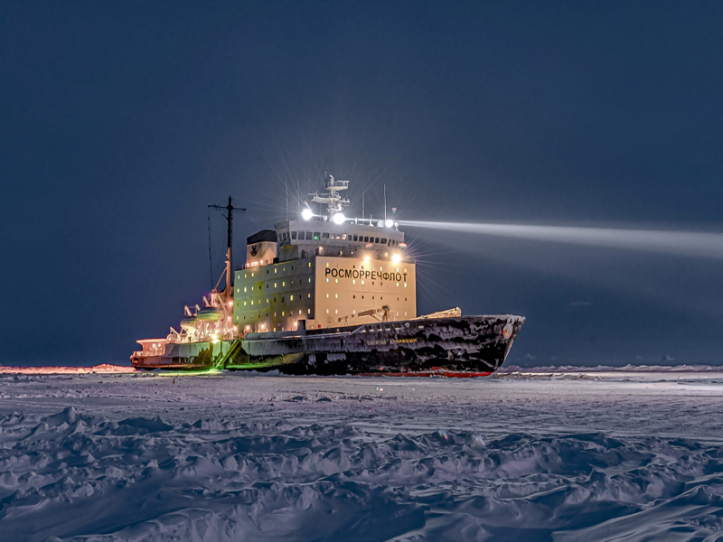 Icebreaking pilotage for vessels carrying cargo and passengers to Alexandra Land of Franz Josef Land by the Kapitan Dranitsyn icebreaker (Murmansk Branch).
