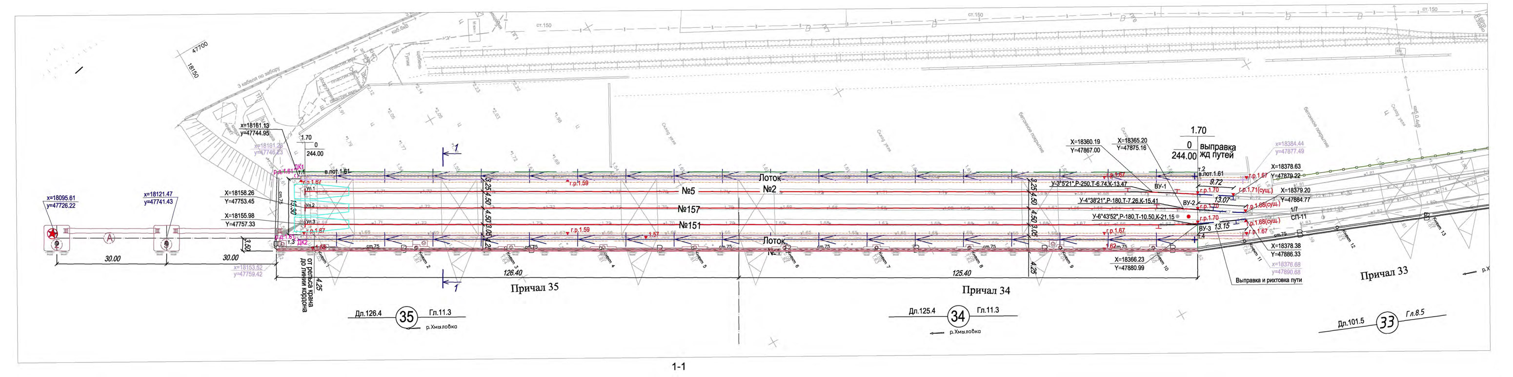 Layout plan of berth No. 25 Plan of actual berth No. 25 Scheme of designed berth No. 25