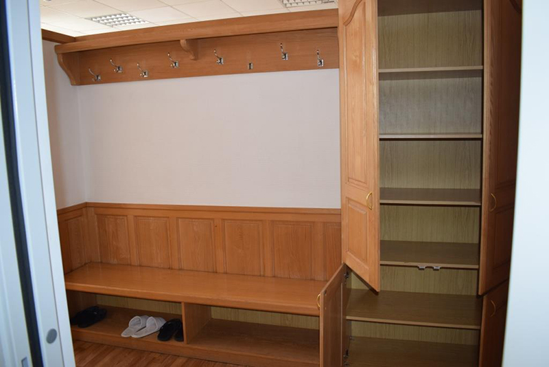 Specially equipped (with necessary household appliances and tableware) room for cooking and eating is located in the administrative building.