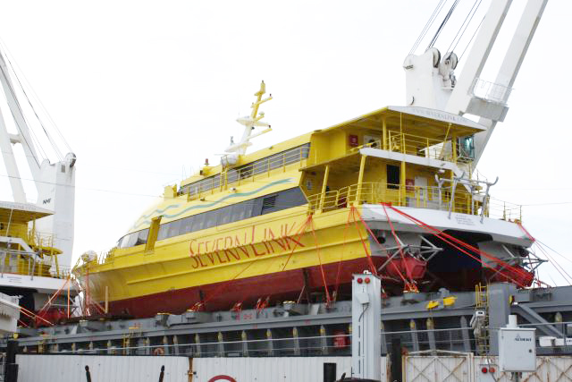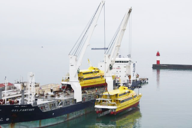 Each catamaran is 40 m long and 10 m wide, able to hold 300 passengers and has maximum speed of 32 knots (about 60 km/h).