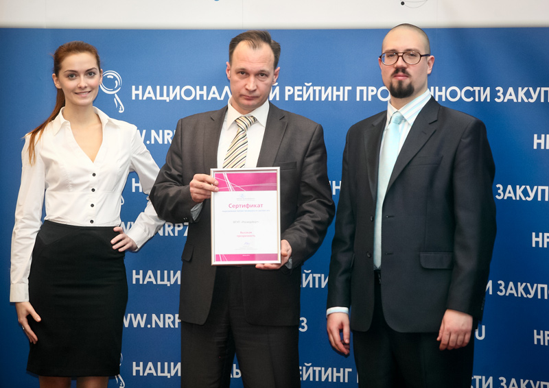 During the ceremony of summing up the rating which was held on December 10, 2012 in the library of the Trade and Inustry Chamber of the Russian Federation, the FSUE "Rosmorport" employees received a corresponding certificate.