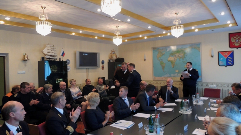 During the official part of the meeting Aleksandr Davydenko awarded the most outstanding employees of the Magadan Branch who made a great contribution to the development and stability of the seaport operation with commemorative badges «10 years of Rosmorrechflot».