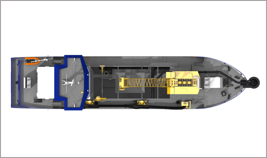 According to the construction project the vessels will have the necessary efficient equipment for dredging corresponding to the climatic conditions of the region where it is going to be used. To widen the field of application of the vessel during dredging with sharp sand and gravel and in limited areas near piers and berths, it is planned to equip all the vessels of this line with multi-functional suspended deep-well dredging pump of «DOP 200» type with a sealed, wearproof, space-saving dredging pump of high-capacity.