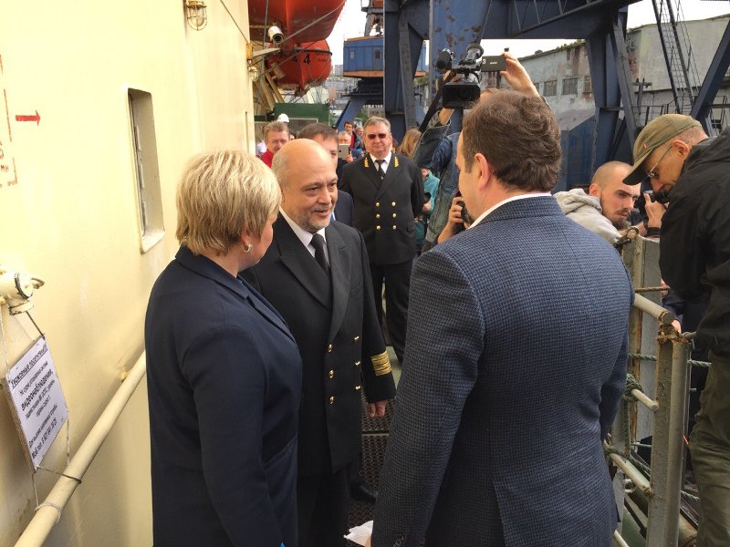In the solemn atmosphere Minister of Natural Resources and Ecology of the Russian Federation Sergey Donskoy, famous Soviet and Russian explorer of the Arctic and Antarctic Regions Arthur Chilingarov, Executive Director Andrey Lavrishchev, and representatives of Murmansk administration greeted the polar explorers and the icebreaker crew.