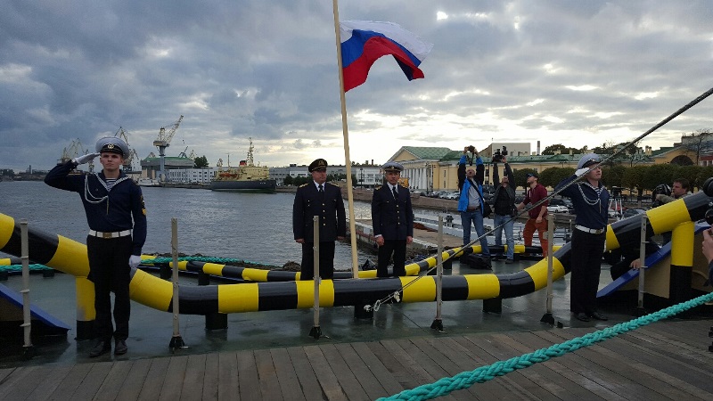 Russian Flag Hoisted on-board of Vladivostok Icebreaker
