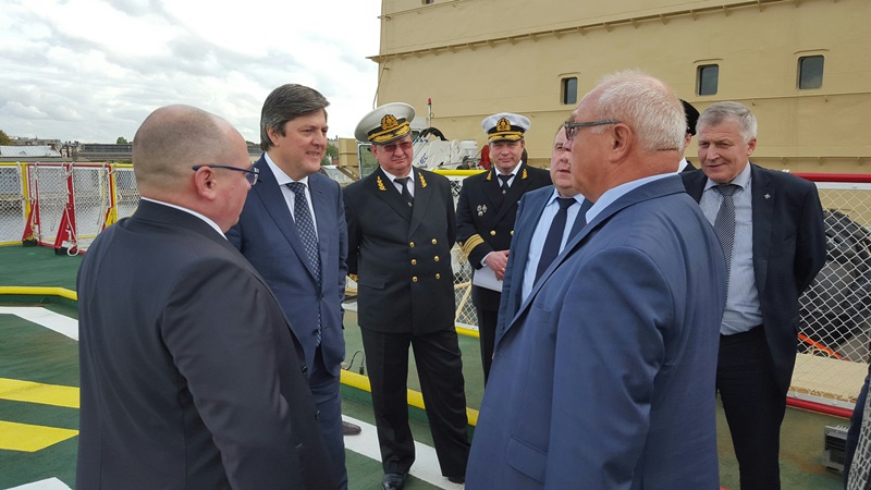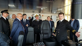 In his tour around the ship Deputy Minister of Transport was demonstrated the helipad, cabins and crew working places, and the navigation bridge.