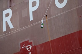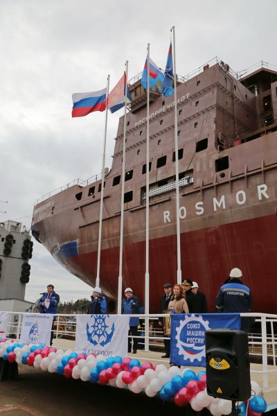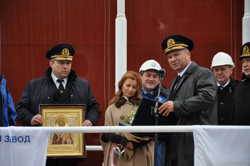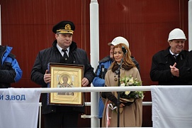 Ceremony of launching a vessel is one of the most important and spectacular steps in history of any vessel. According to the tradition, in the beginning of the event the icebreaker was blessed. Anzhelika Ryskova, the one who broke a sacrificial bottle of champagne over the bow, became the vessel’s “mother-in-law” and named it Novorossiysk.