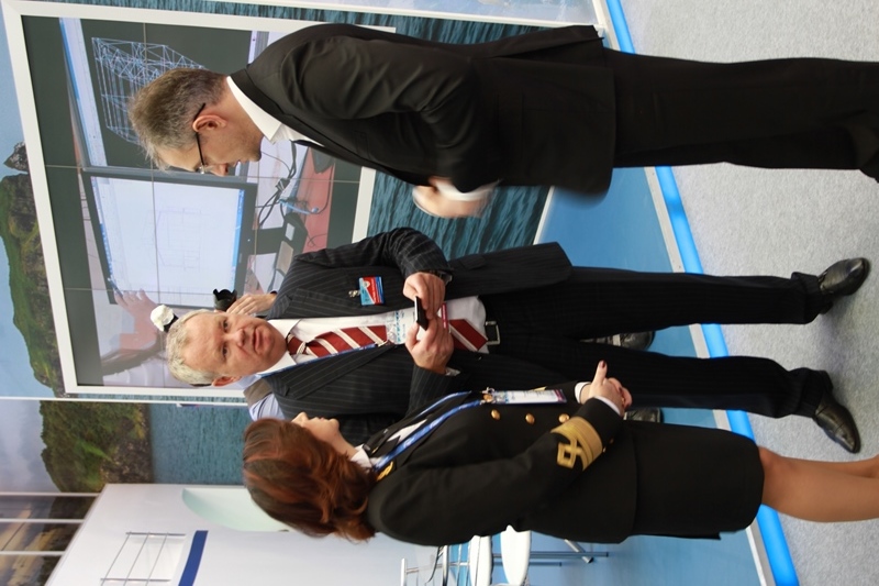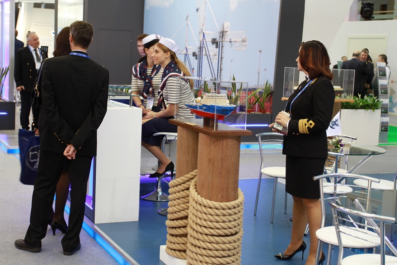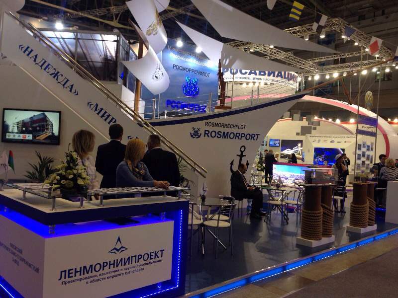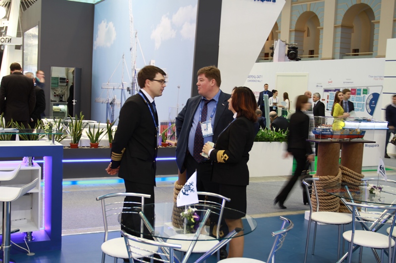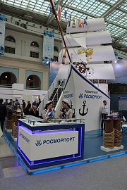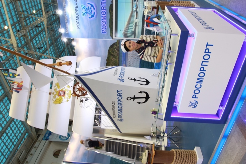 Unique exposition, imitating a sailing ship, perfectly creates atmosphere of a real frigate and won’t leave you emotionless – in the very first day the “sailing ship” turned to be one of the most visited stands. The composition topic has its background: nowadays FSUE “Rosmorport” is the single company in the world with 3 sailing ships of historical meaning, they are: Mir, Nadezhda and Chersonesos. Cadets from marine institutes have their internship on-board of the vessels.