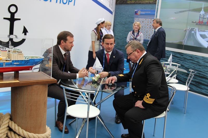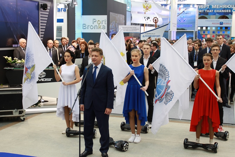 FSUE “Rosmorport”, also being an exhibitor, represented an exposition dedicated to its major activities and projects under implementation. In the very first day of the exhibition FSUE “Rosmorport” was visited by Minister of Transport of the Russian Federation Maksim Sokolov.