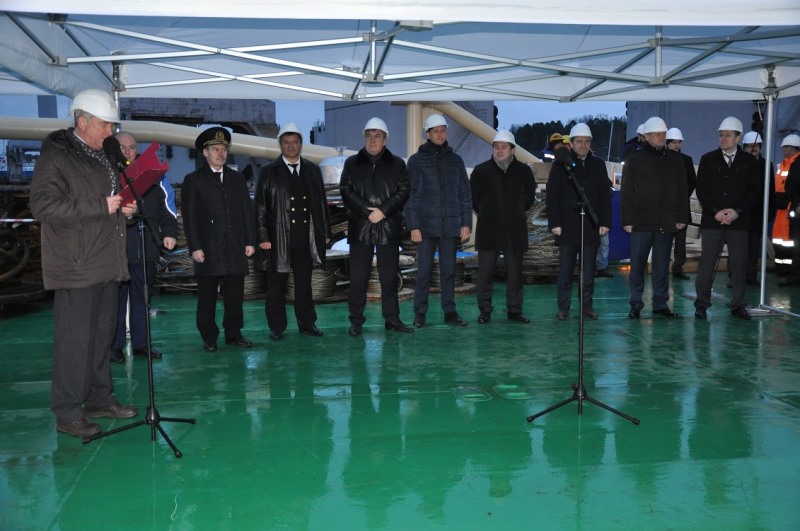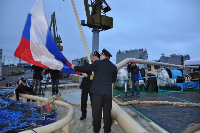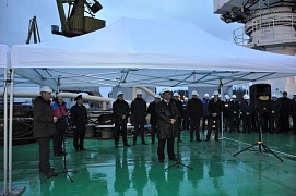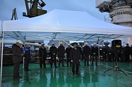 On December 25, 2015 on the territory of the Vyborg Shipyard the official ceremony of hoisting the Russian Federation national flag on the icebreaker Murmansk and the signing of the vessel acceptance and transfer certificate by FSUE “Rosmorport” and JSC United Shipbuilding Corporation (USC) were held.