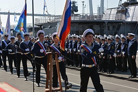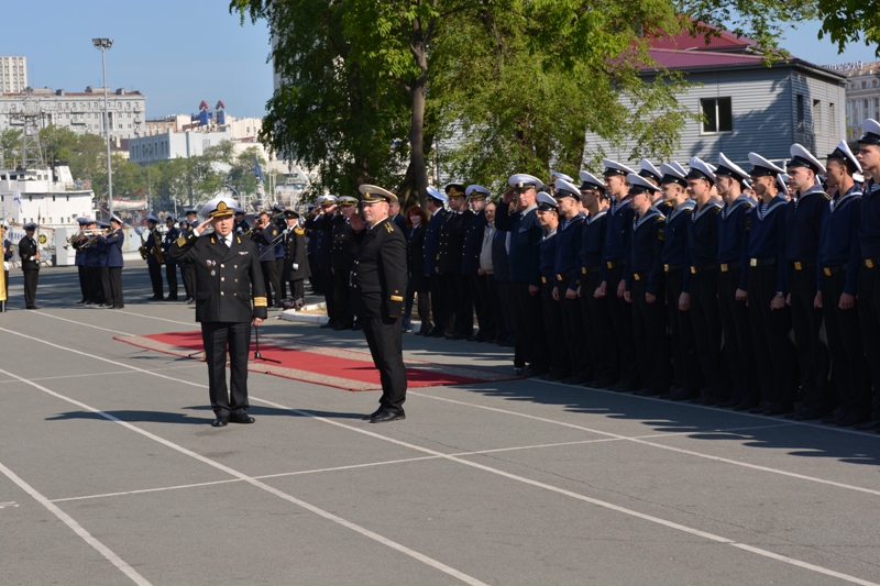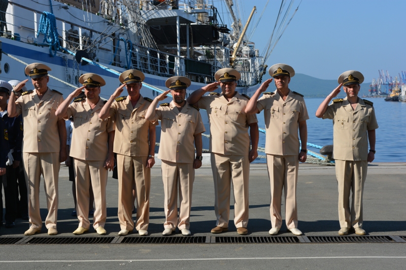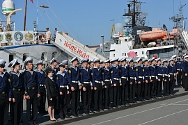 During the official ceremony of seeing off the sailing ship, Deputy General Director of FSUE “Rosmorport” Sergey Kurov, rector of MSU n.a. G. I. Nevelsky Sergey Ogay and other honorable guests made a greeting speeches for cadets and the crew. They wished the cadets a prolific and calm voyage, and also traditional “seven feet under the keel”.