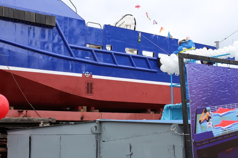 During the event a traditional ceremony of vessel “christening” was held. According to the naval tradition Tatiana Peron, an Honored Artist of the Republic of Karelia, broke a bottle of champagne over the bow of a vessel, marking the beginning of its “new life”.