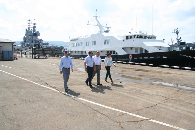 Andrey Lavrishchev inspected the process of reconstruction of berths No. 34, 34 A of Coastal pierhead of the seaport of Novorossiysk, Southern and Northern protective pierhead caps of the seaport of Kavkaz, estimated the readiness of the lowered platform of the Western pierhead for vessels acceptance within facillity preparing to the International Black Sea Tall Ships Regatta 2016.