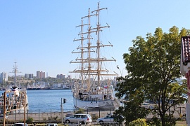 On June 22, 2016 Nadezhda Training Sailing Ship moored in the seaport of Vladivostok. The Sailing ship returned to the seaport of registration after finishing the training of cadets of Maritime Colledge under Nevelsky Maritime State University.