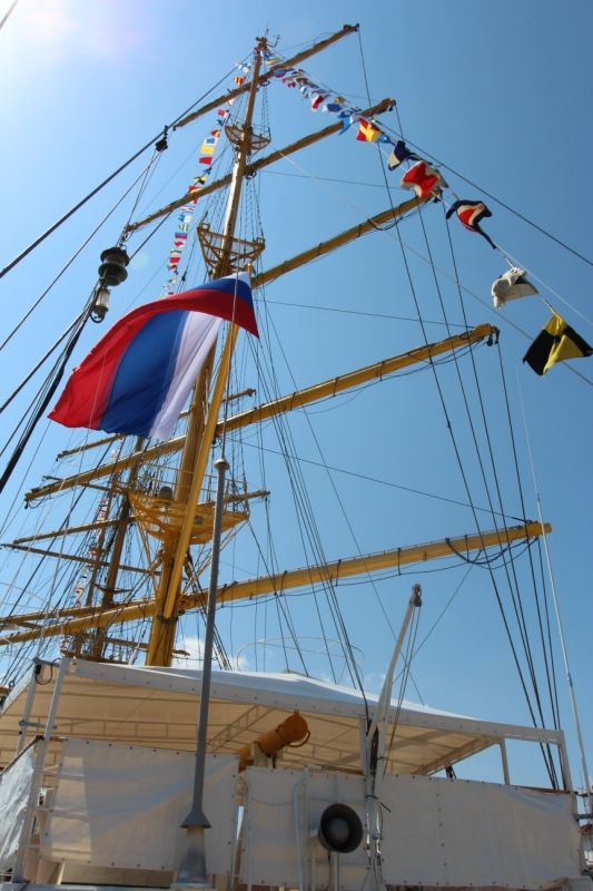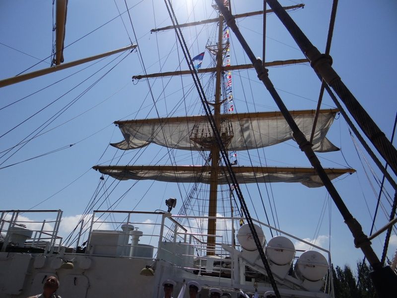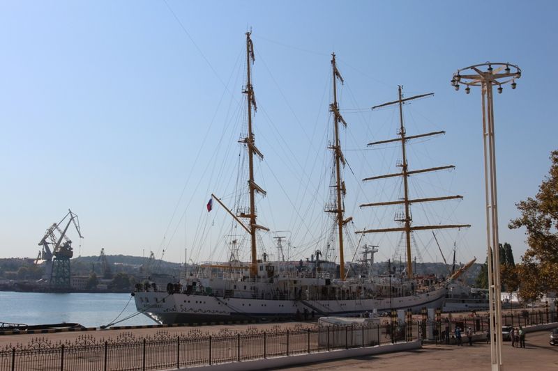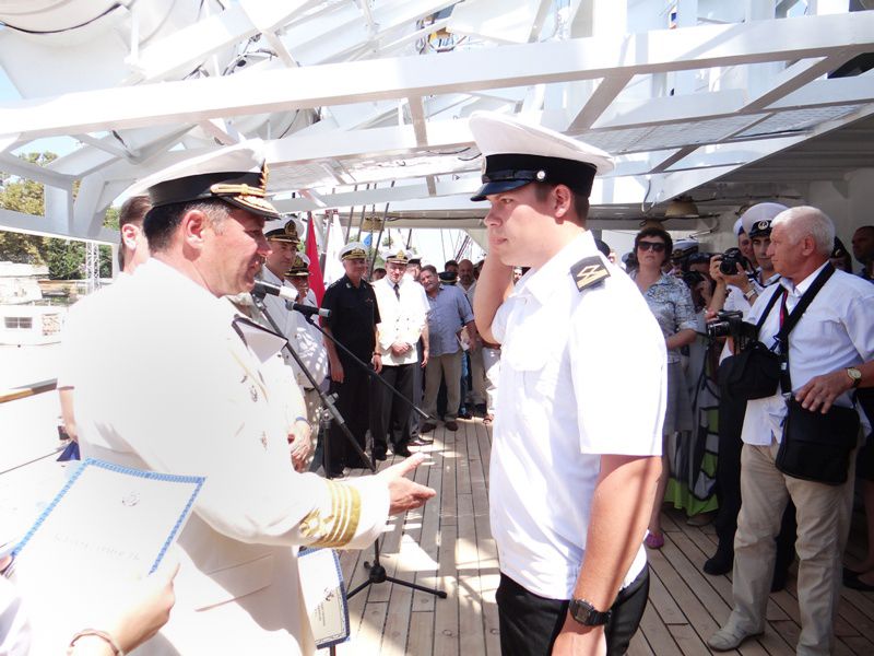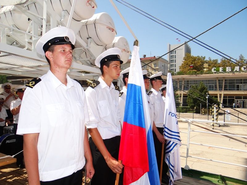 Official ceremony of hoisting sails aboard Khersones sailing training ship was held on August 12, 2016 on Grafskaya quay of the city of Sevastopol.