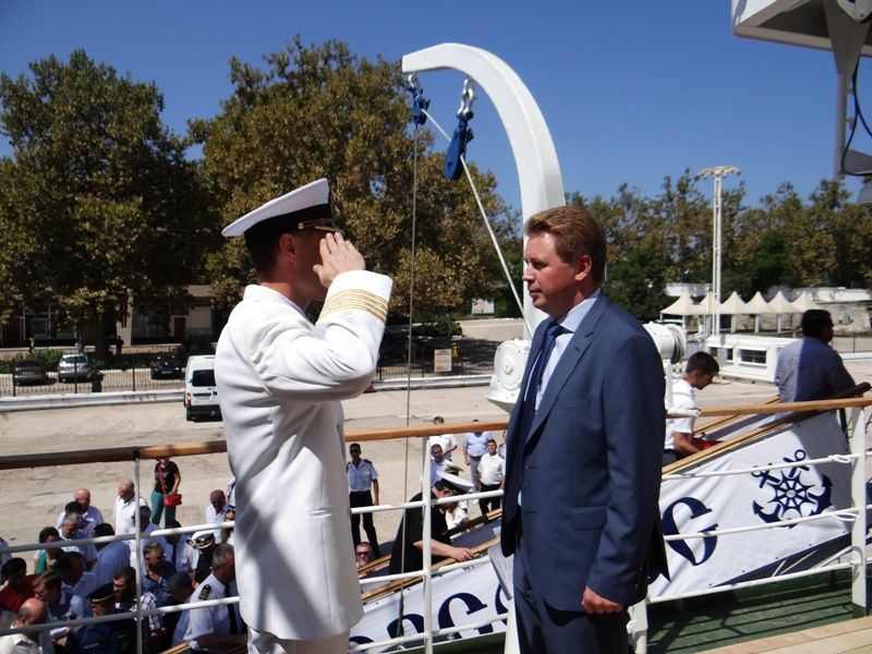 Temporary Acting Governor of Sevastopol Dmitry Ovsyannikov noted that hoisting sails aboard Khersones frigate after oblivion and decay is a significate event in Sevastopol’s life.
