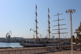Three-masted Khersones Sailing Frigate was laid in Gdansk shipyard (Poland) in 1987, in 1989 it was launched. The frigate is built according to the prototype of sailing ships of the early XX century and has a complete sail rigging of the “ship” type.