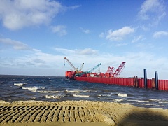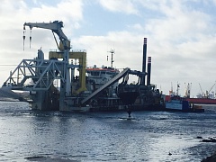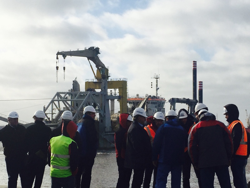 During the working trip the specialists examined preparatory period berth intended for delivery of cargo and large production modules within the field development and LNG plant construction, southeast ice protection construction, control and correction station site, navigation aids (NA) storage, process line of the LNG plant and storage tanks for LNG. Then the enterprise representatives visited Zheng He dredger, from board of which they examined the northwest ice protection construction.