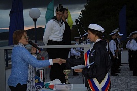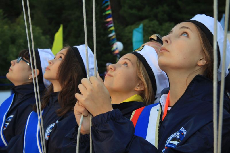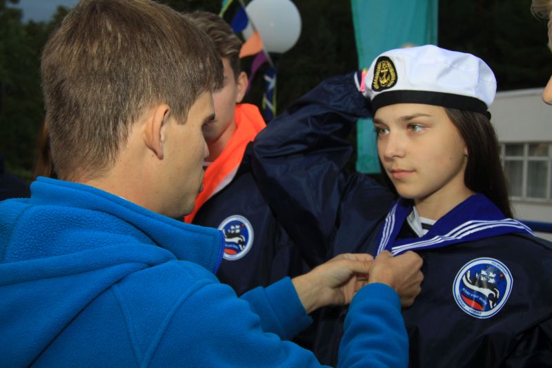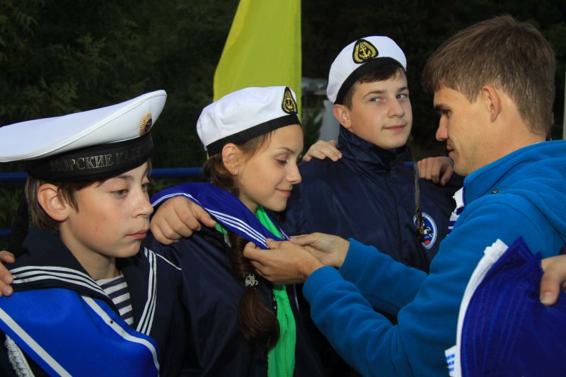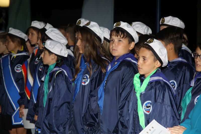 In memory of the days spent in the famous children's center, all young “Shtormovoy” sailors were solemnly given memorable jack-flag of the session.