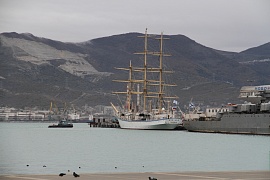 Then, Andrey Tarasenko visited Nadezhda sailing ship, which has completed replenishment of food stocks and is expecting cadets of Admiral Ushakov State Maritime University to start new training sailing practice.