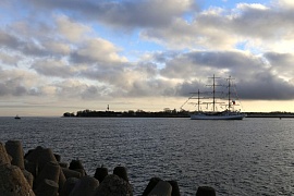 On November 26, Nadezhda sailing training ship (STS) arrived in the seaport of Baltiysk sea terminal. Cadets of Sedov Institute of Water Transport – Branch of FSBEI HE “Admiral Ushakov Maritime State University” passed sailing practice under the sails of the legendary sailing ship.