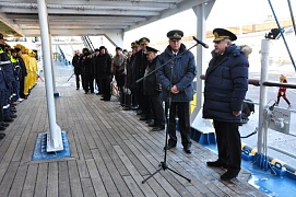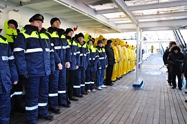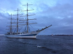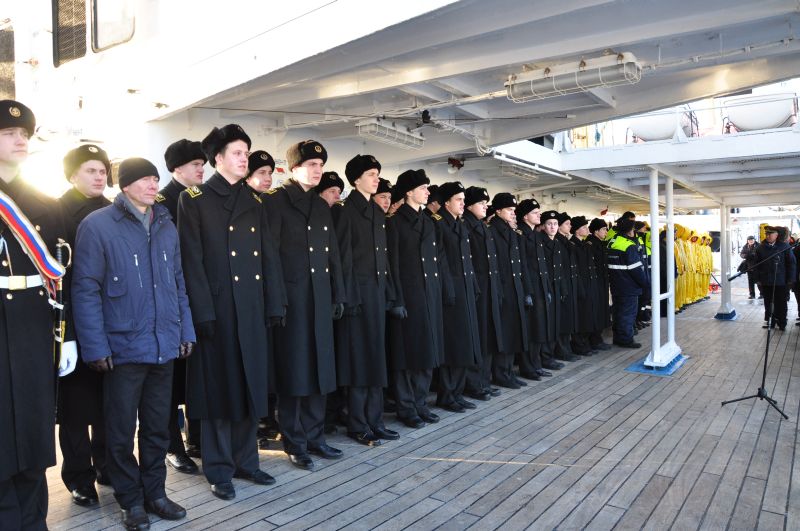 On November 29, 2016, an official ceremony of welcoming the sailing training ship was held, where the cadets were greeted by deputy director for personnel and administrative issues of the FSUE “Rosmorport” North-Western Basin Branch Aleksandr Strelnikov, Captain of the seaport Big Port Saint Petersburg Aleksandr Volkov, General Director of JSC “Passenger Port of Saint Petersburg “Morskoy Fasad” Vadim Kashyrin and other officials.