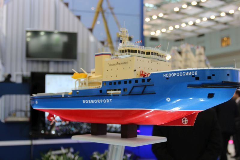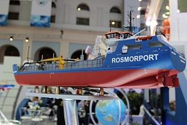 This year, on its stand, FSUE “Rosmorport” presented 2-level exposition in the form of a dredging vessel. At the 1st level there were located unique layouts of marine equipment that were an exact miniature copy of the enterprise’s vessels. The FSUE “Rosmorport” Exposition guests had the opportunity to look at fascinating 3-D project of Severnaya Dvina dredger. The guests noted originality and the information richness of the exhibition site of the enterprise.