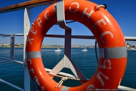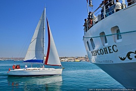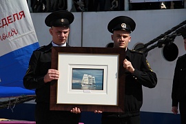 One of the founders of the Maritime Photo Collection Works, A. Alyakrinsky, presented his new work aboard the sailing ship. A photo picture showing the Khersones sailing boat was solemnly given to the city of Sevastopol.