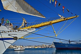 After 10 years of standing time reconstructive maintenance has been performed at the Zvyozdochka shipyard. On August 12, 2016 a solemn ceremony was held in the Grafskaya quay of Sevastopol to hoist the sails on the renovated Khersones frigate.