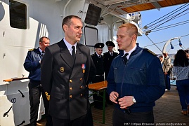 In his turn, vice governor Yury Krivov presented a model of the future sail depicting the emblem of Sevastopol to the vessel crew. The sail will be placed on the sailing ship's foremast.