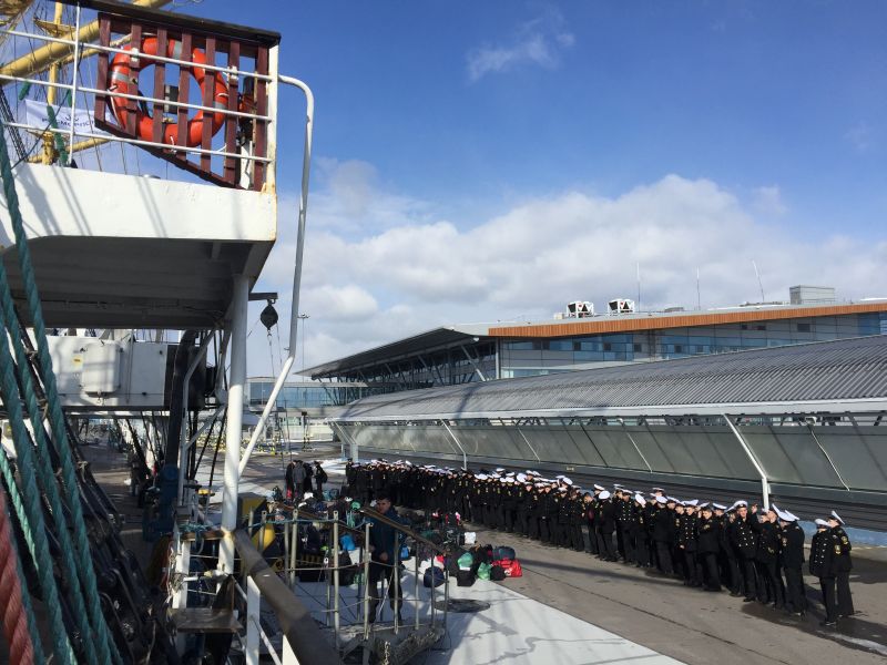 On the same day the sailing vessel left the Seaport of Passenger Port Saint Petersburg for Wilhelmshaven (Germany). The sailing vessel will approximately arrive in Germany on April 27, 2017. During this year's navigation, the sailing vessel is planning to take part in several races, including Sail Den Helder and The Tall Ships Races 2017.