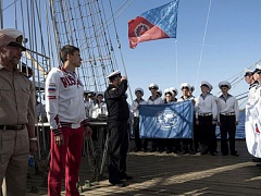 The Spartakiad has also started aboard the ship. Cadets passed GTO (“Ready for Labor and Defense”) norms under the leadership of Master of Sports, Olympic medalist (silver medal in bobsledding) in Turin Alexei Seliverstov. The project is being realized within the events of the all-Russian sports complex program “Ready for Labor and Defense”. One of the priorities is to make physical culture, sports and healthy lifestyle popular among young people.
