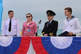 In commemoration of opening the shift in the children's center the flags of the Russian Federation, FSUE “Rosmorport”, the Sea Teaches All program, and flags of the program's partners, the Ministry of Transport of the Russian Federation and Rosmorrechflot, have been raised.