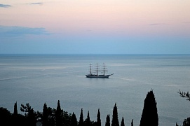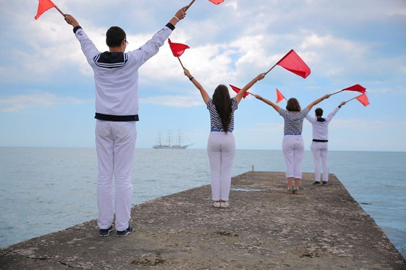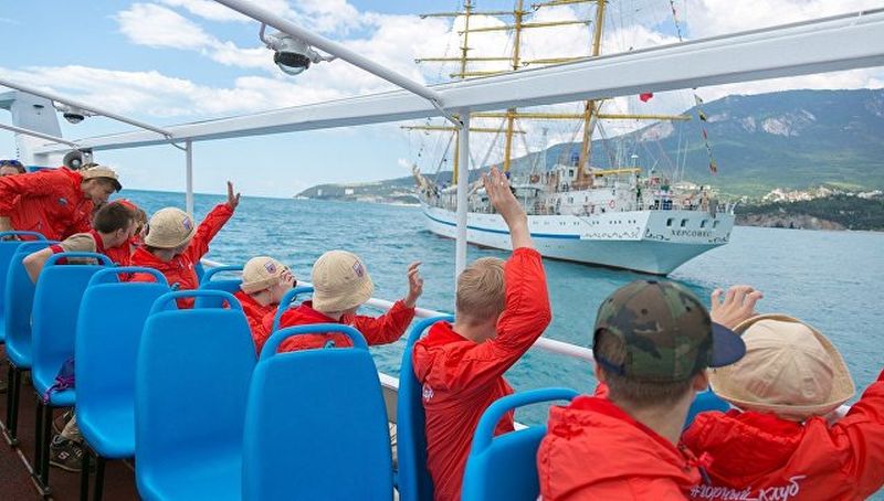 By hoisting the sails the sailing ship moved along the sea line of the children center. Young sailors of the Artek children flotilla welcomed the Khersones crew by using semaphore signals. In response from the sailing ship welcomed the children flotilla with three long whistles. At parting the Khersones left for the seaport of Yalta in full sail with universal delirium of the guests of the holiday. The sailing ship will stay in Yalta till June 20, 2017. The city residents can board the sailing ship, meet its captain and the crew, and stand abaft the wheel.