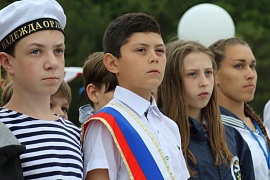 In celebration of this remarkable event a solemn parade was held at one of the children camps of the center named “Shormovoy”. The crew of the Nadezhda of the Orlyonok-2017 completed its voyage with love of sea and faith that the best is yet to come! On the occasion of the session end the colors of the education program partners were hauled down and a holiday concert was given.