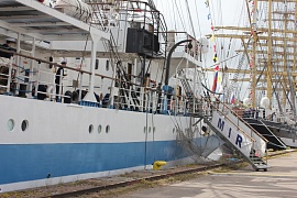 On July 13, 2017 the Mir sailing ship arrived in the seaport of the city of Kotka (Finland) to join The Tall Ships Races 2017 prestigious regatta. Upon arrival at the port the crew members of the Mir sailing ship took part in the parade of crews.