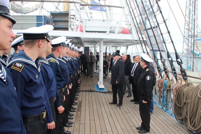 WWII veterans who live in Tallinn became honorable guests aboard the ship. Rear Admiral Ivan Merkulov addressed the crew members. He told the cadets about the heroic events of the Tallinn Offensive in August 1941, one of the major sea operations to evacuate the Baltic Fleet to Kronstadt from Tallinn.