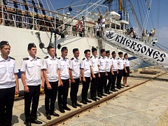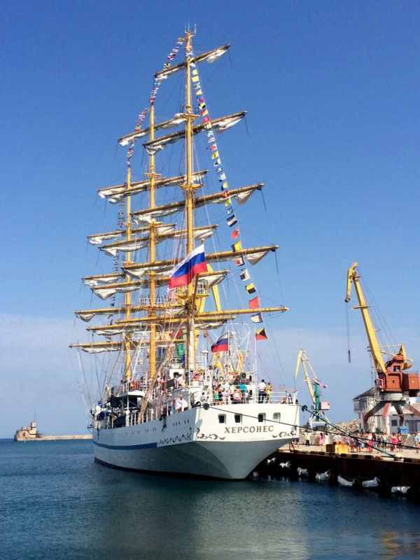 The Khersones training sailing ship arrived at the port of Feodosia on July 28, 2017 to take part in the festive events devoted to the 20th anniversary of Ivan Aivazovsky's birth.