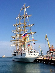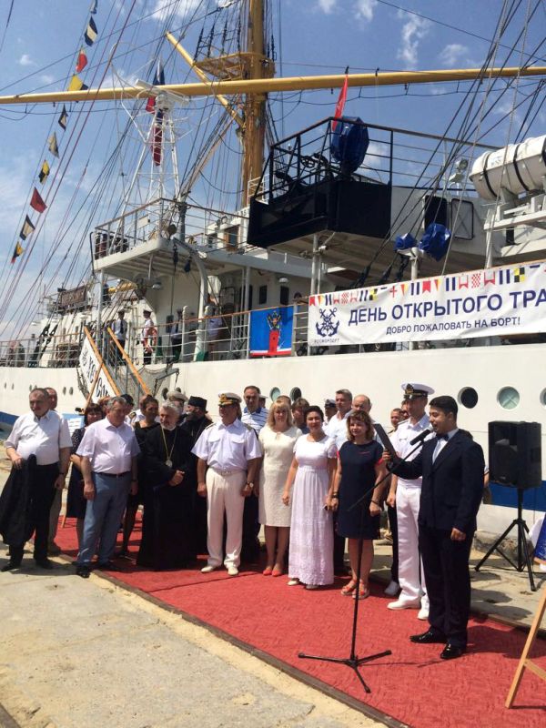 FSUE “Rosmorport” General Director Andrey Tarasenko welcomed the honorable guests. In his speech he noted that for the first time the Khersones sailing ship had made its call at the port of Feodosia. It is remarkable that this happened in honor of the 200th anniversary of the great marine painter's birth. The legendary ship became a true decoration of the holiday. On this day the ship's crew is ready to warmly accept all those who wish to go aboard the ship.