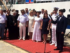 The ship was attended by Deputy Chairwoman of Crimea's Council of Ministers Larisa Opanasyuk, Crimean Culture Minister Arina Novoselskaya, head of the Feodosia City District Municipal Entity Svetlana Gevchuk and Archbishop Ezras Nersisyan, head of the Russian and Novo-Nakhichevanskya Diocese of the Armenian Apostolic Orthodox Church.