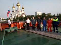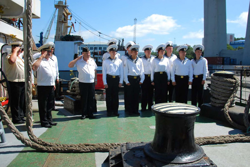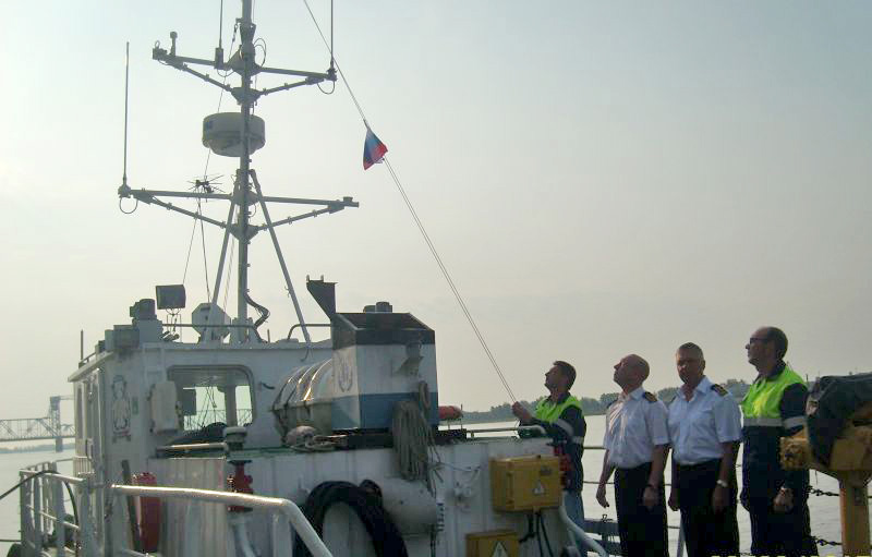 In the Southern Basin the solemn events involved the Elbrus, Afalina and Albatros boats. The Azovo-Chernomorsky Basin Branch conducted the ceremonies on the Bata, Bora and Bospor boats, on the Kadosh dredging vessel and the Admiral Lazarev and the Admiral Serebryakov tugs.
